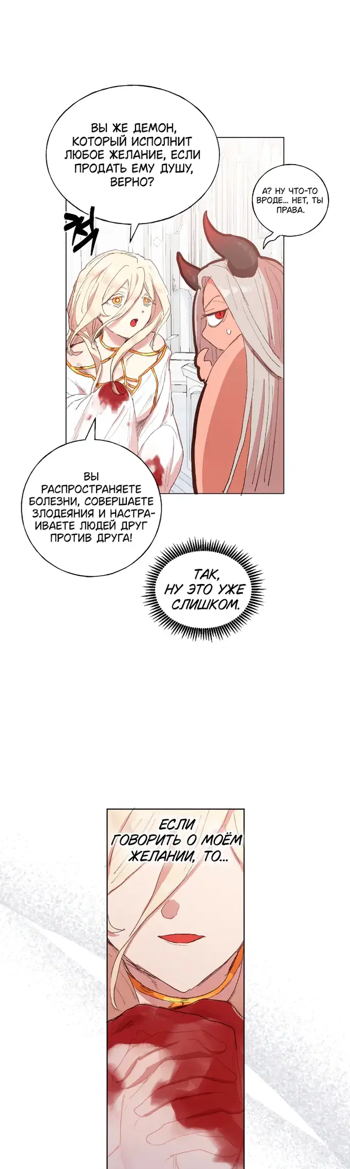 Но я, будучи святой, запятнала свою святость, воспользовавшись запретными знаниями. Я прибегла к чёрной магией и совершила жертвоприношения, чтобы призвать демона. Но вот вопрос: тот ли это демон, что сможет мне помочь?